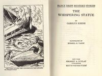 The girls are rescued. Nancy asks about the whispering statue. The girls check a tool shed and find a statue. It seems to be the statue, but it doesn't whisper.