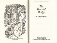 1931: (The caddy's name in the revised text was Chris, but in the original text it's Sammy.) Her father is referred to as a criminal lawyer 'whose fame...has spread over many states.' Some of Nancy's background is discussed. She talks to her caddy about the bridge. Nancy notices the differences in the way Mortimer signs his name. She falls into a flowerbed due to Mortimer.