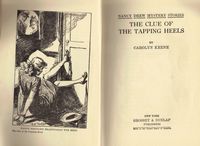 Nancy's mother died when Nancy was three. Hannah's friend is named Bealing, and she is a nurse. She is helping a woman named Miss Carter who has lots of Persian cats. Nancy is going to be in a Rivers Club play (as she will be an actress in The Clue of the Dancing Puppet). Five of the cats the woman has have been stolen, and a kitten is found that has been drugged. Nancy calls the police. George and Bess sleep in the garage with the cats. Nancy is in the house and hears tapping sounds.