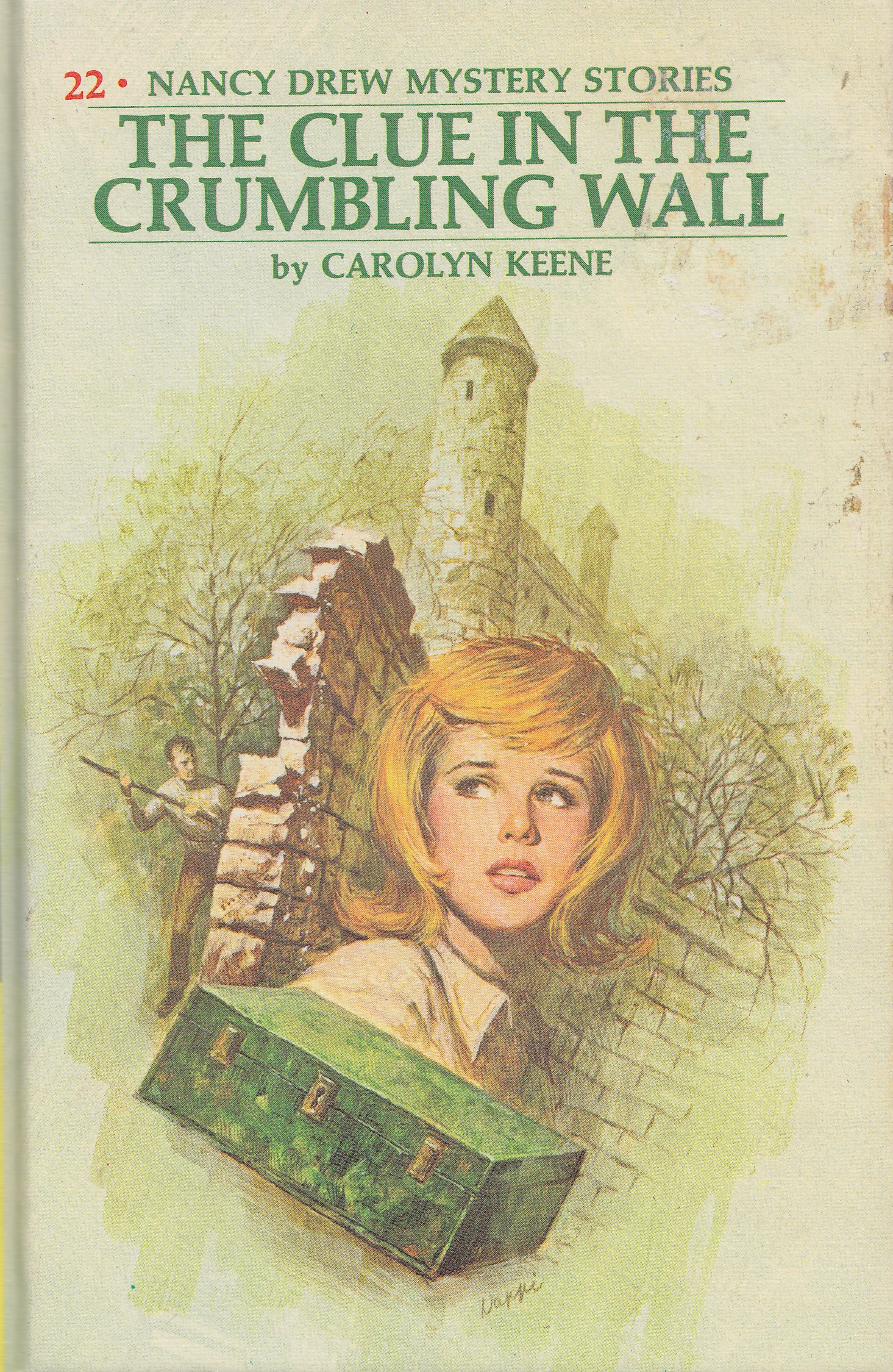 1973: Nancy explains the clue. Salty has come for a visit. She talks to Weatherby and he tells her a little about Walt. The lawyer had sold Weatherby some jewelry and Nancy thinks it might be stolen. She gets a report from the policeman that trailed the thug that had trailed Nancy. The three girls meet Salty and go to the castle via a water route. Nancy finds an entrance to a section of the castle grounds they want to check out.