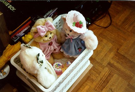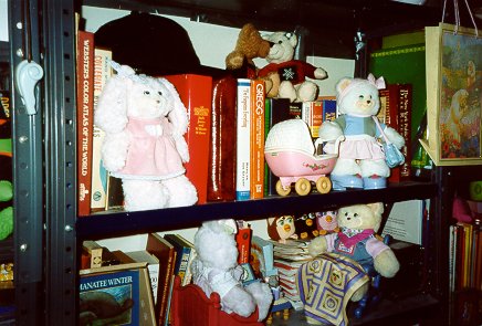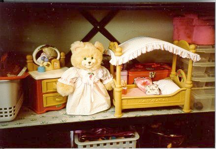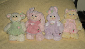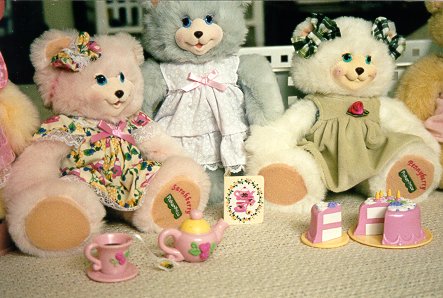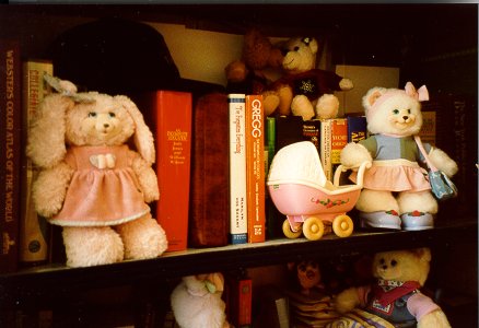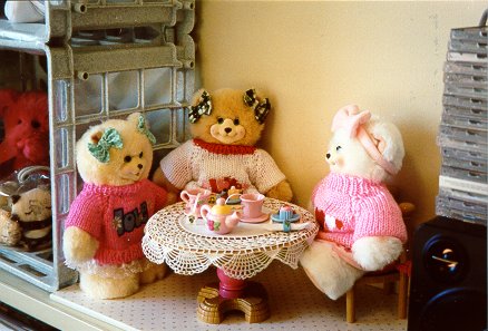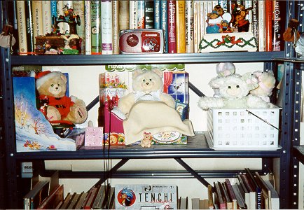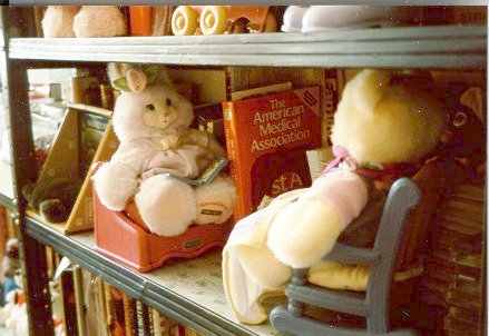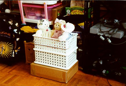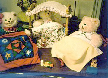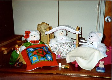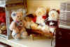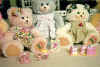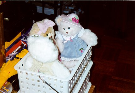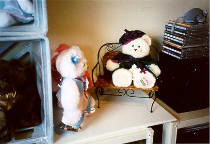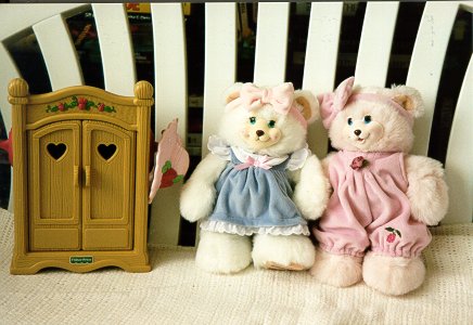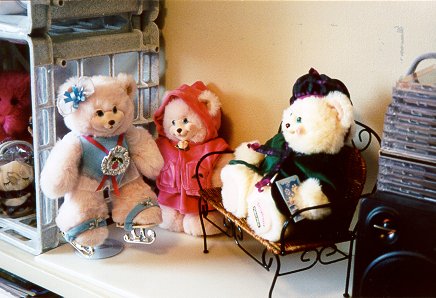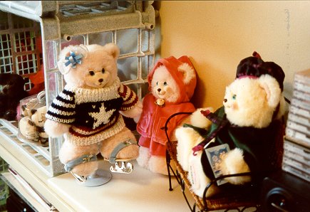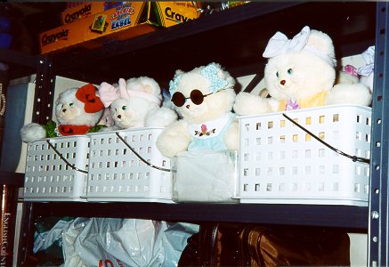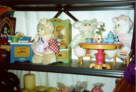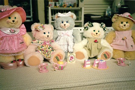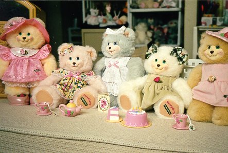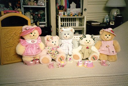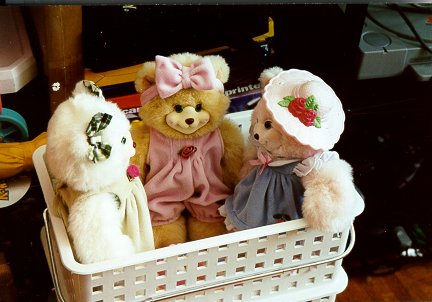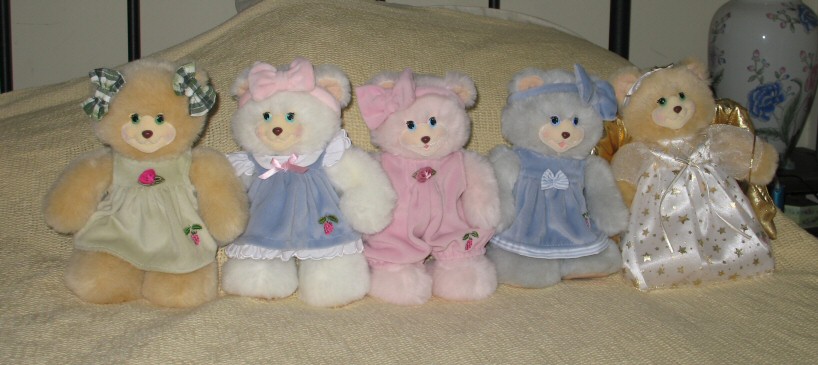 | As of Thursday, April 20, 2006: There are now only 5 bears left and 4 friends-of: Pennyberry, Sarahberry, Mollyberry, BerryAnn, and Berryangela have stayed. Also Berrykate, Berryellen, Berrysue, and Hannahberry are still here. All the others (including the babies) have gone to other homes via Goodwill. I hope they will be happy where they all end up. A little more information is here. |