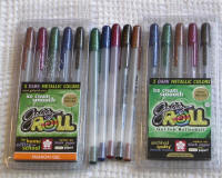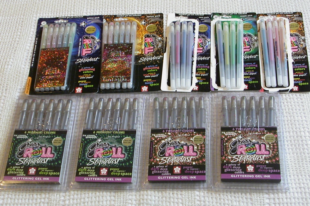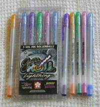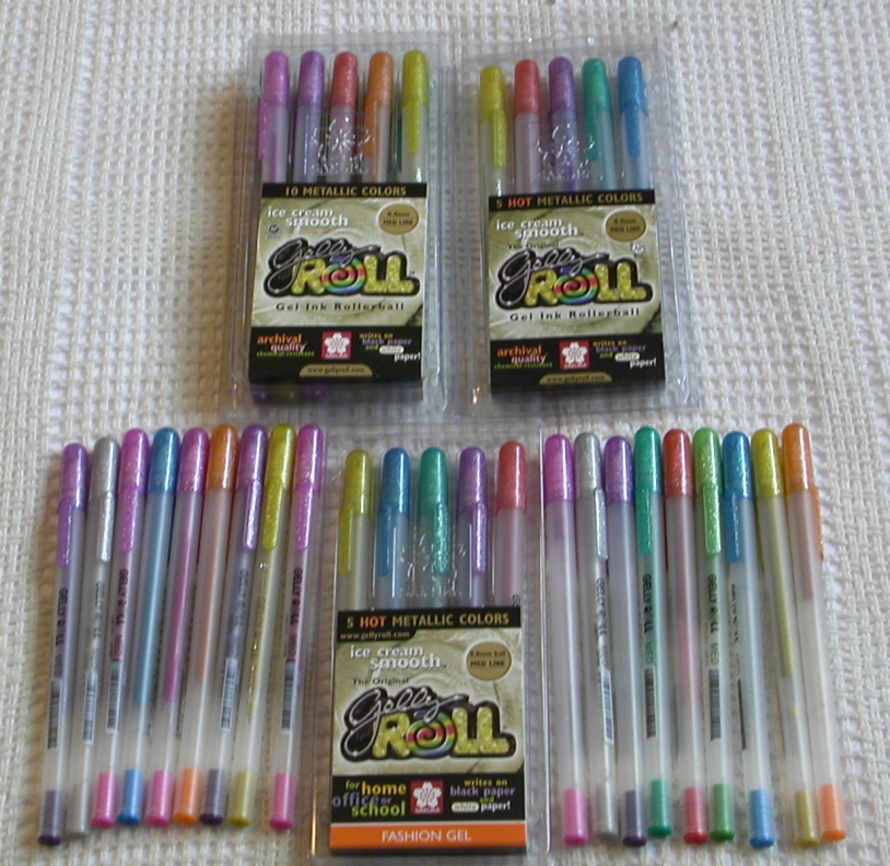 These are the most reliable yet colourful of all my gel pens. The metallics are not as heavily metallic as some other brands, which sometimes is a minus and sometimes is a plus. As you can see, I have duplicates of almost all the pens, sometimes more than two of a colour.
