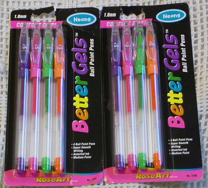 cardboard backing and have 8 each of: creamy, marble, and pearlized pens |